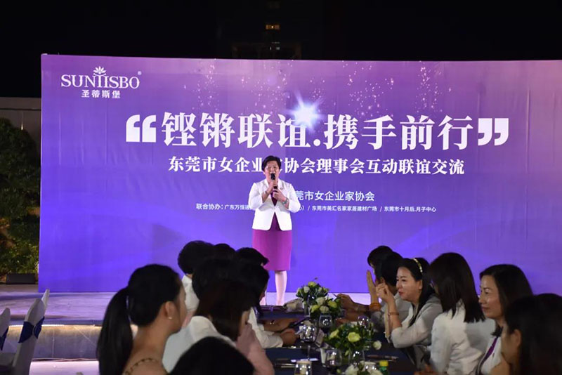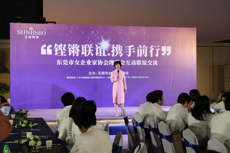 接下来,东莞市女企业家协会理事会会长叶小红女士上台发言,她表示非常感谢3044永利集团集团举办此次联谊交流会,同时,对我们的产品和企业文化给出了很高的评价。她号召东莞市女企业家协会以后要更多的举办此类交流联谊活动,以此增进会员企业之间的联系和了解,为未来进一步交流发展开创新局面!她希望我们能携手同行,强强联手,共赢未来,共创新辉煌!